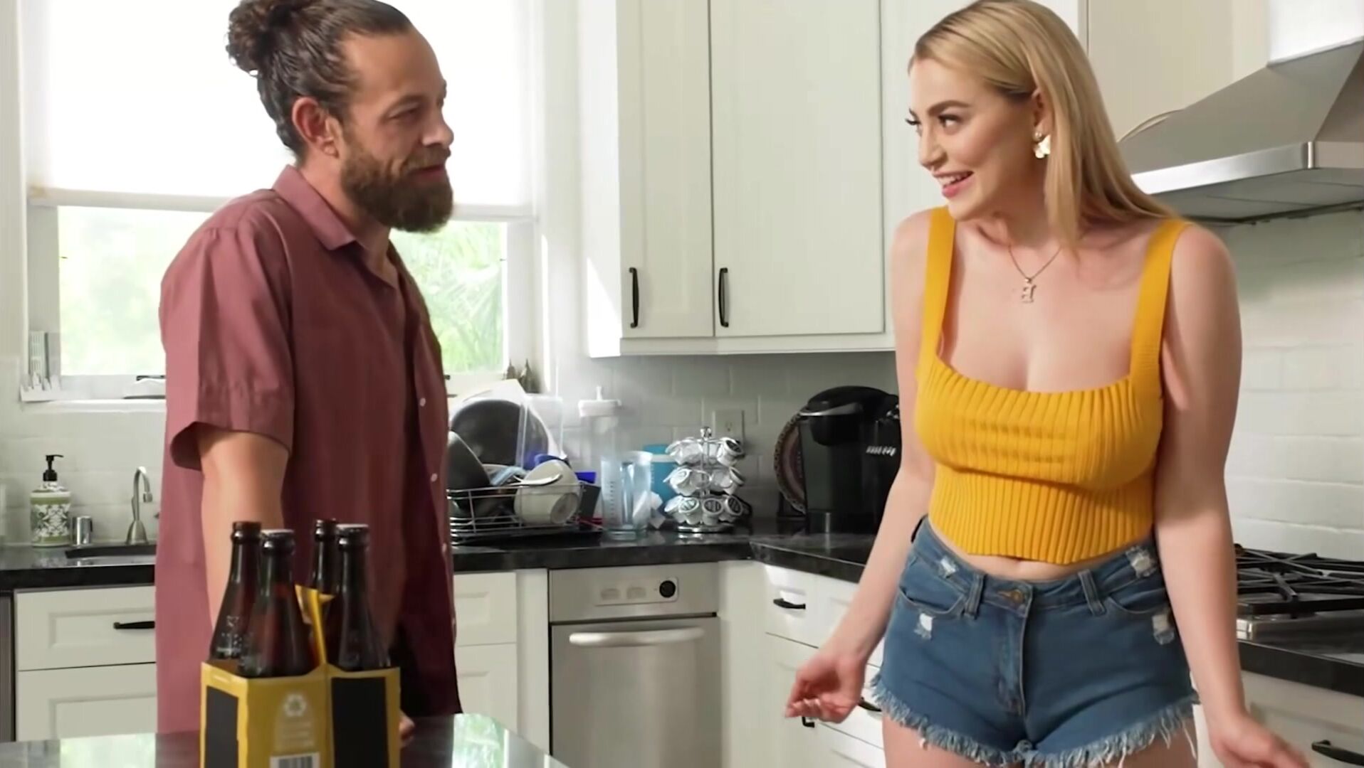 Horny Housewife Asks Husband If She Can Fuck The Handsome Contractor While He Watches Her