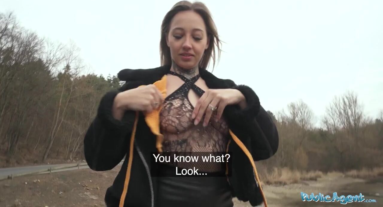 Hitchhiker fucked outdoors and indoors in fishnet body suit