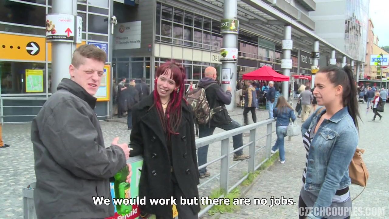 Czech couple fucks in foursome for money in public