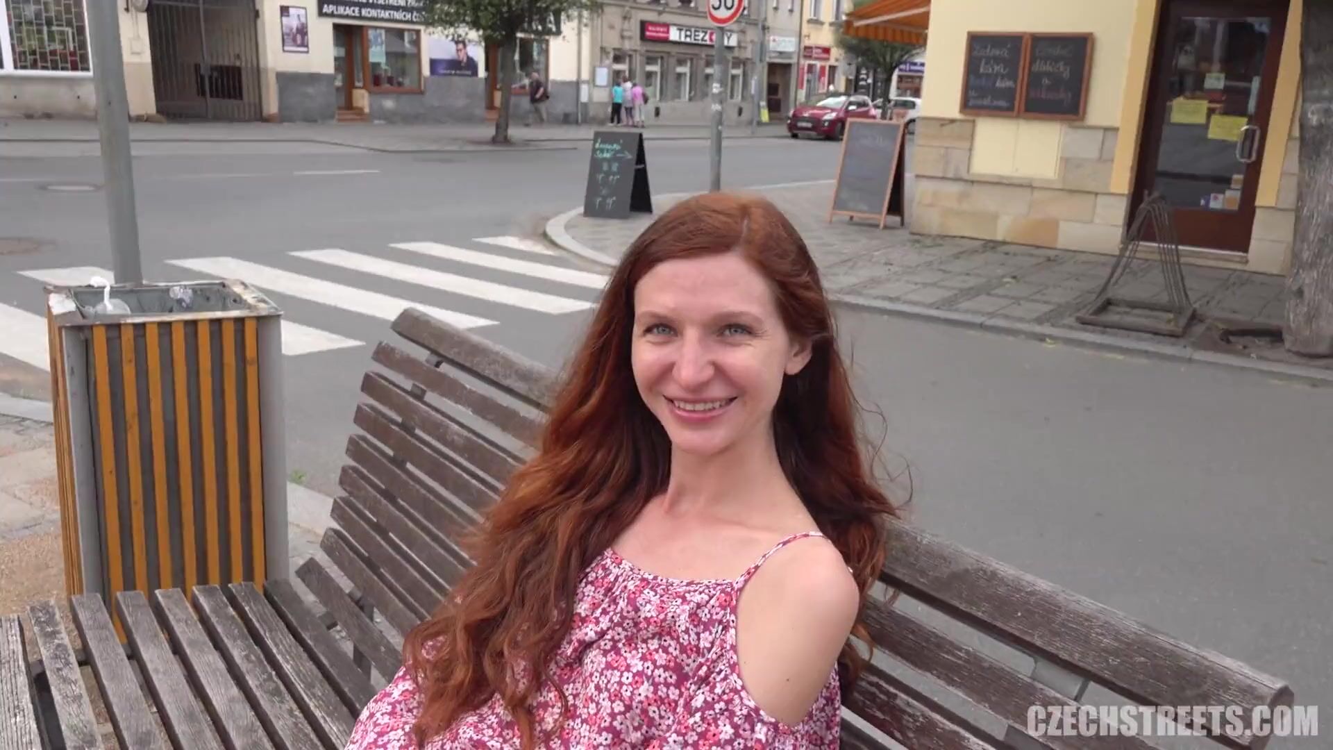 Public blowjob and more with Czech redhead