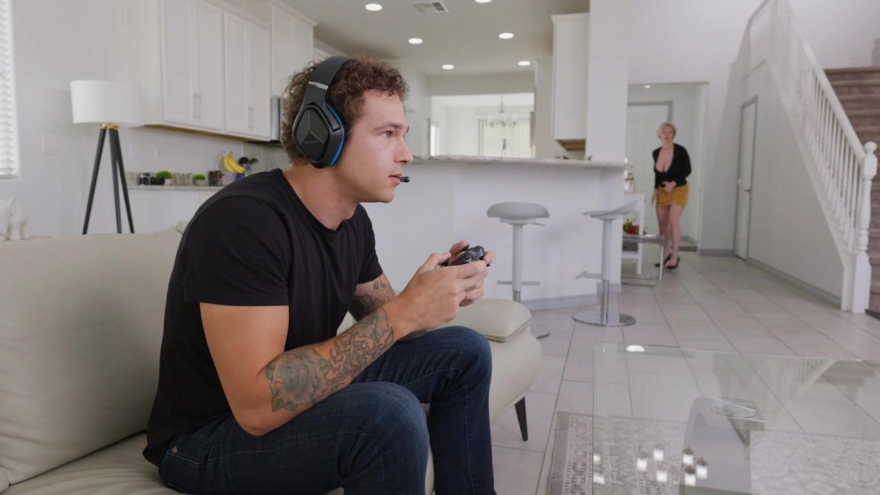 Dee Williams, the busty MILF, invites a young guy over for a steamy encounter. She starts by taking control, making him put down his controller for some real-life action. The blonde pornstar teases him with her big tits and big ass, performing a seductive reverse cowgirl and doggystyle, showing off her hanging boobs and tight pussy. Dee then switches to a provocative POV blowjob, leaving the young man speechless. This Old/Young dynamic is sure to leave you wanting more from this hot babe and her sexy antics.