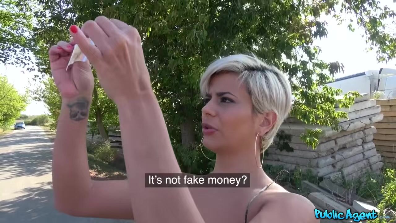 Short-haired blonde Amaranta Hank fucks in public